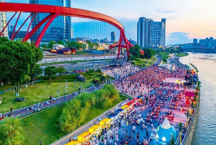 得天独厚的地理位置,叠加风景、美食与音乐交融所汇聚的人气,共同构成了一幅可漫步、可聆听、可品味的立体生活图景,让市民游客获得了“身在公园中、消费在风景里”的新体验。2024年,长江音悦街入围省级“蜀里安逸”消费新场景;并于2025年获首届“川渝不夜地标”称号。