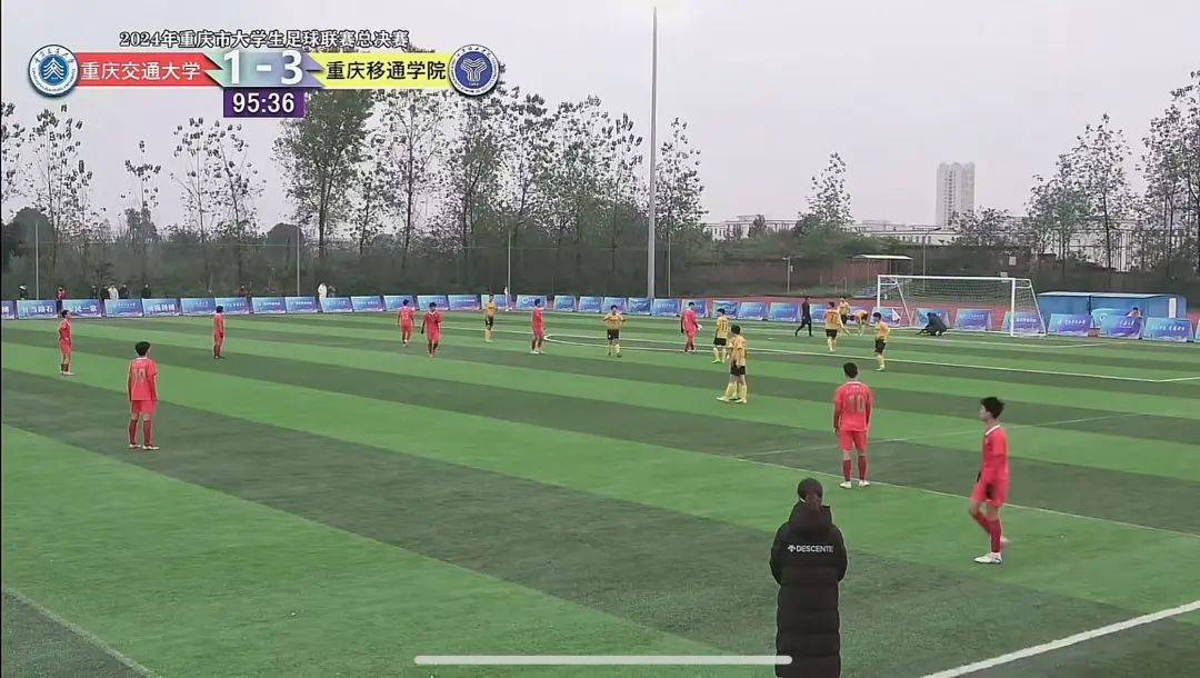 在12月14日进行决赛中,面对实力强劲的重庆交通大学足球队,重庆移通学院的队员们毫不畏惧,士气高昂。他们凭借着出色的控球技术和灵活多变的战术,在开场后就迅速占据了场上的主动,并多次创造出有威胁的进攻机会,以2:1拿下上半场比赛。