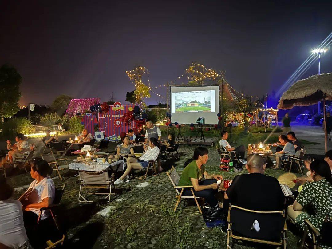 8月5日晚,在位于南城街道黄桷门村的夕野露营基地,回放了中乙联赛第14轮赛事,吸引百余名球迷前来观看,现场欢呼呐喊声不断。