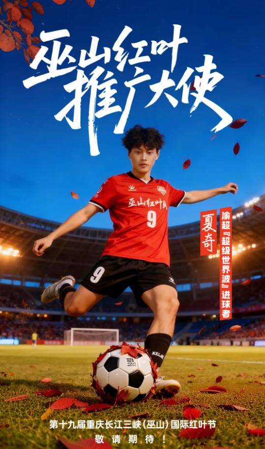 这个精彩进球让夏奇、巫山红叶队和渝超成功出圈。10月14日,巫山县方面宣布,聘任19岁小将夏奇为第十九届重庆长江三峡(巫山)国际红叶节巫山红叶推广大使。巫山方面认为,此次聘任不仅是对夏奇竞技实力的肯定,更源于他在赛场上展现出的越挫越勇、逆境绽放的拼搏精神,与巫山红叶历经寒霜却愈发炽烈的精神内核高度契合。