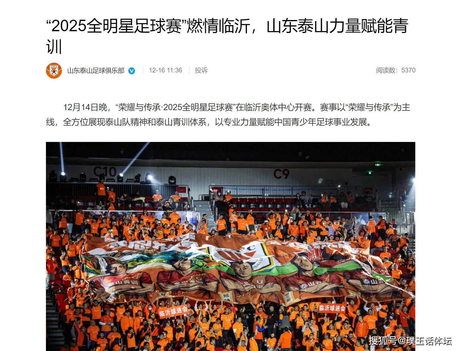 据悉,此次活动2025全明星足球赛在临沂奥体中心开赛,是以荣耀与传承为主线,全方位展示泰山队精神和泰山青训体系,以专业力量赋能中国青少年足球事业发展的重要活动。