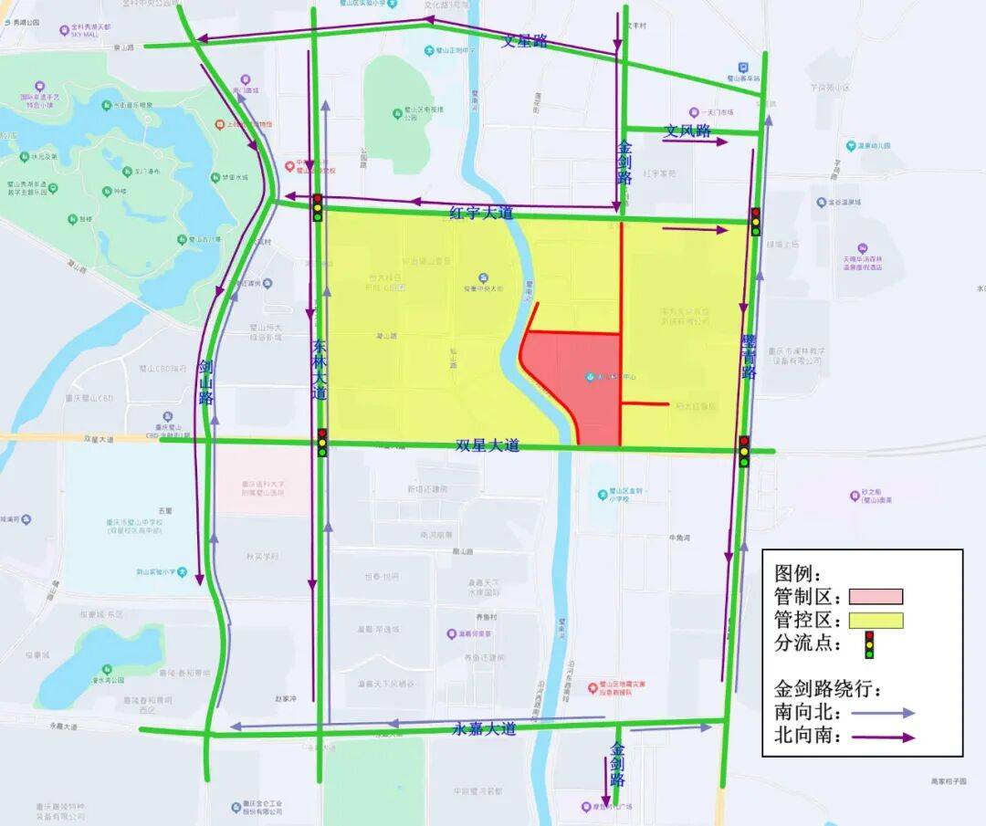 交通管制期间,璧山区公安局交通管理支队将根据道路实际交通流量,对管控区域道路采取远端分流、临时管制等措施,确保管控区域车辆快速疏散,请市民朋友配合现场执勤警力指挥,安全有序通行。