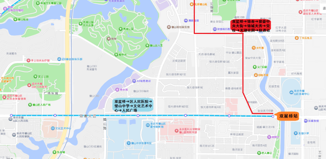 双星大道、红宇大道、金剑路、沿河东路、沿河西路、璧青路、仙山路、东林大道、文星路。