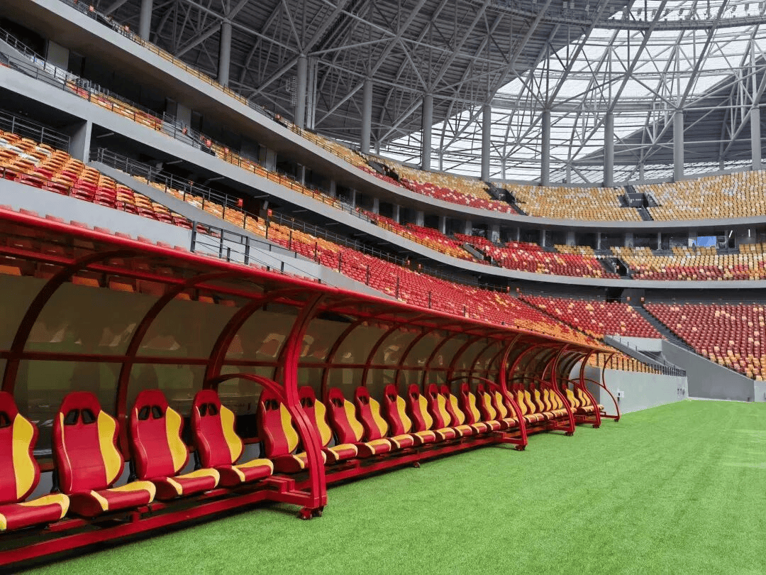 最炸的是南看台。设计参考了德甲多特蒙德主场,国内最大的单体看台,能塞下近一万人。到时候TIFO一拉,口号一喊,整个看台像一座活火山。替补席紧挨着观众席,中间没有间隔,前排观众能直接听到教练骂人、球员喊话。这种沉浸感,综合体育场给不了。