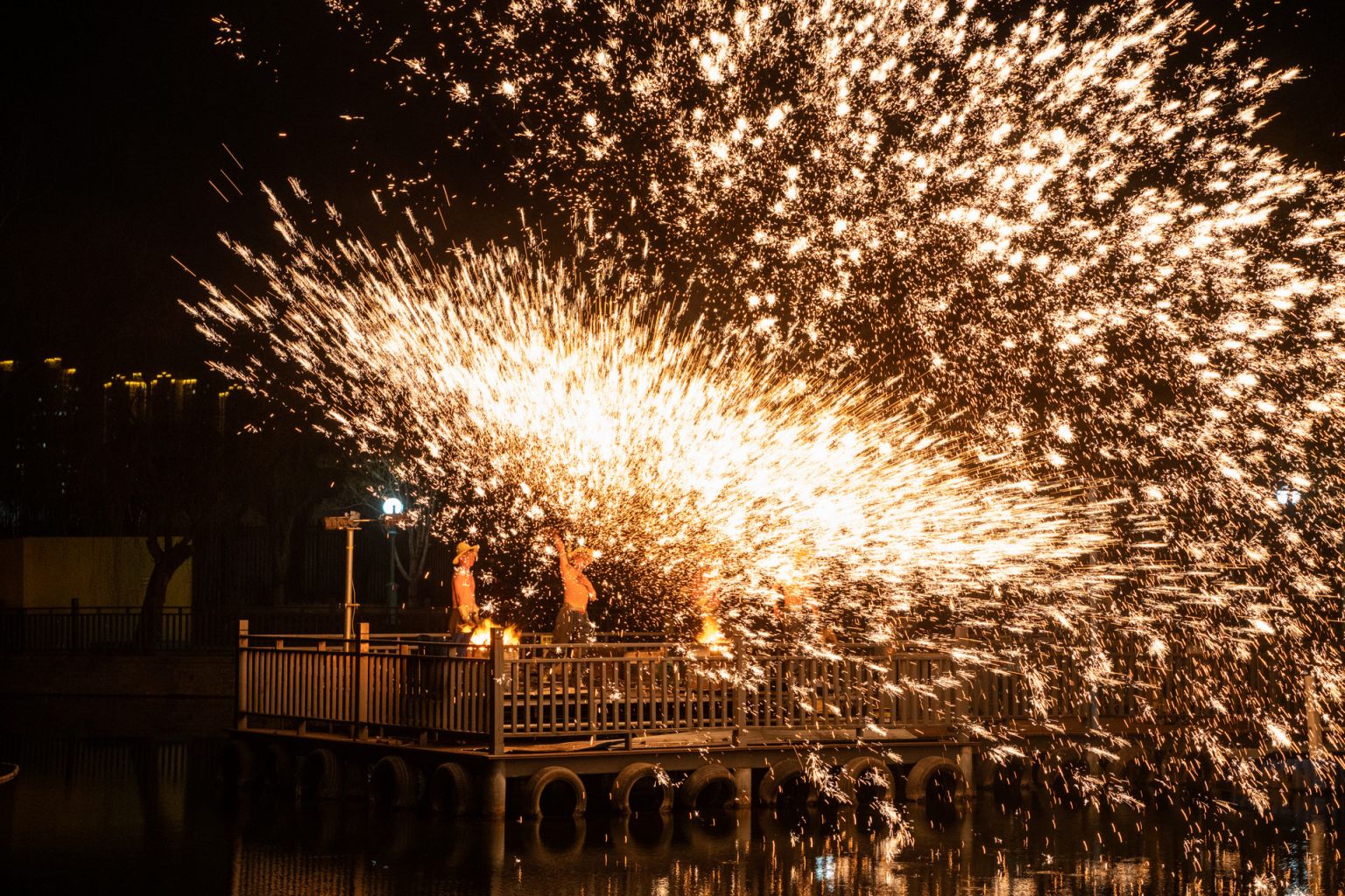 每天19:30至20:00,震撼人心的“打铁花”表演将登场,同期还将呈现50米“焰火瀑布”奇观与风火轮演出,共同打造独具潼南特色的“花火大会”盛宴。