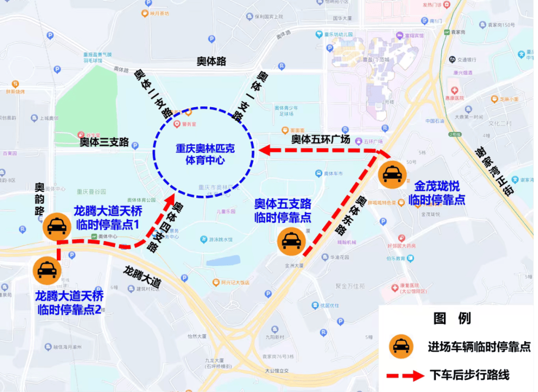 12月6日进散场高峰时段(13:00-15:00,16:30-17:30)奥体路全线严禁停车上下客,市民可在龙腾大道上行拜博口腔公交车站、龙腾大道下行隆鑫国际公交车站、奥体东路金茂珑悦公交车站、奥体东路奥体五支路口临时上下客,车辆务必做到即停即走,禁止临停等候。