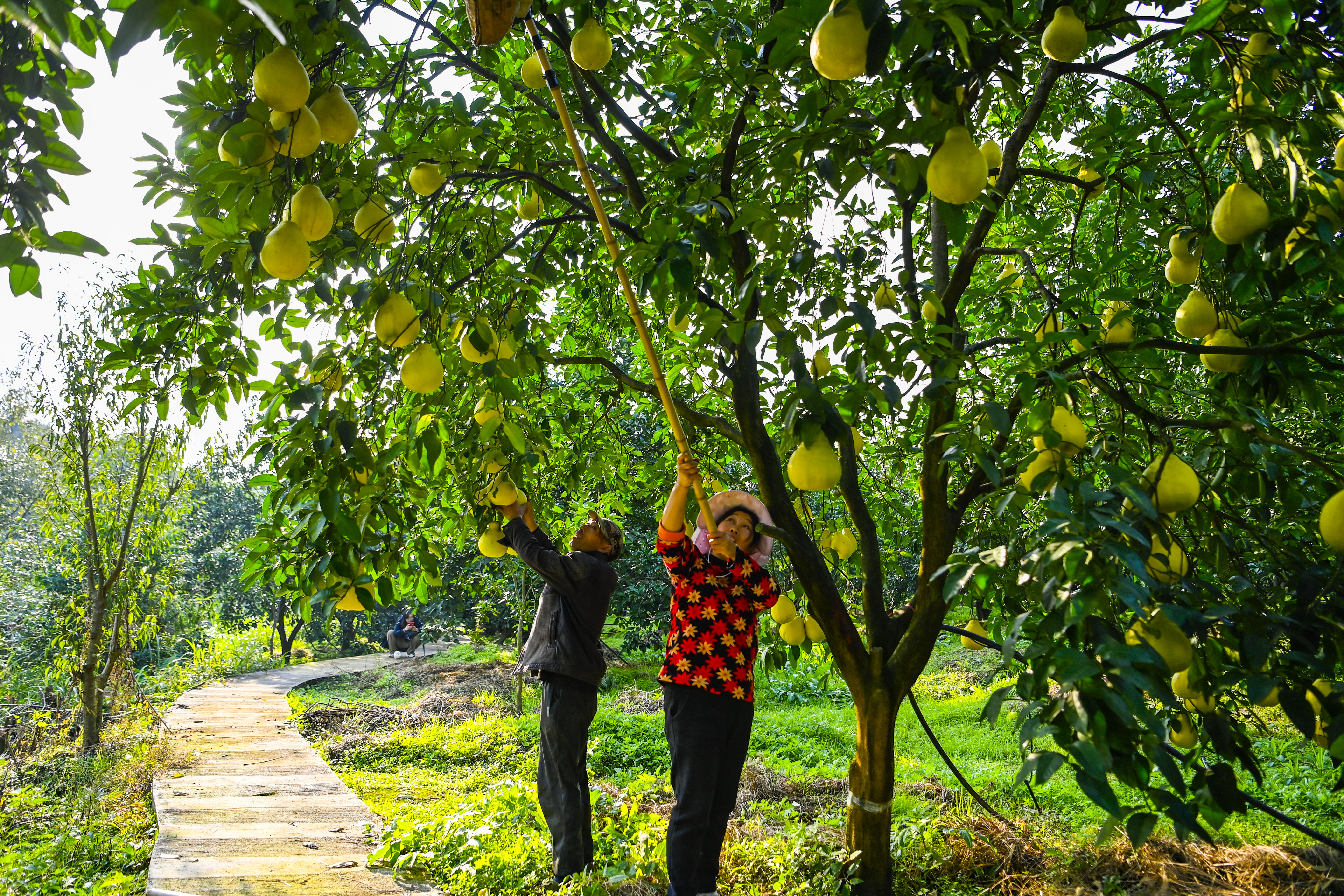 如今,邻封镇长寿柚种植面积达5.3万亩,年产值超7.5亿元,带动农民人均增收3.3万元,成为名副其实的产业“金名片”。邻封镇党委副书记、镇长周小淳说,这颗小柚子已成为长寿特色产业的亮眼招牌。