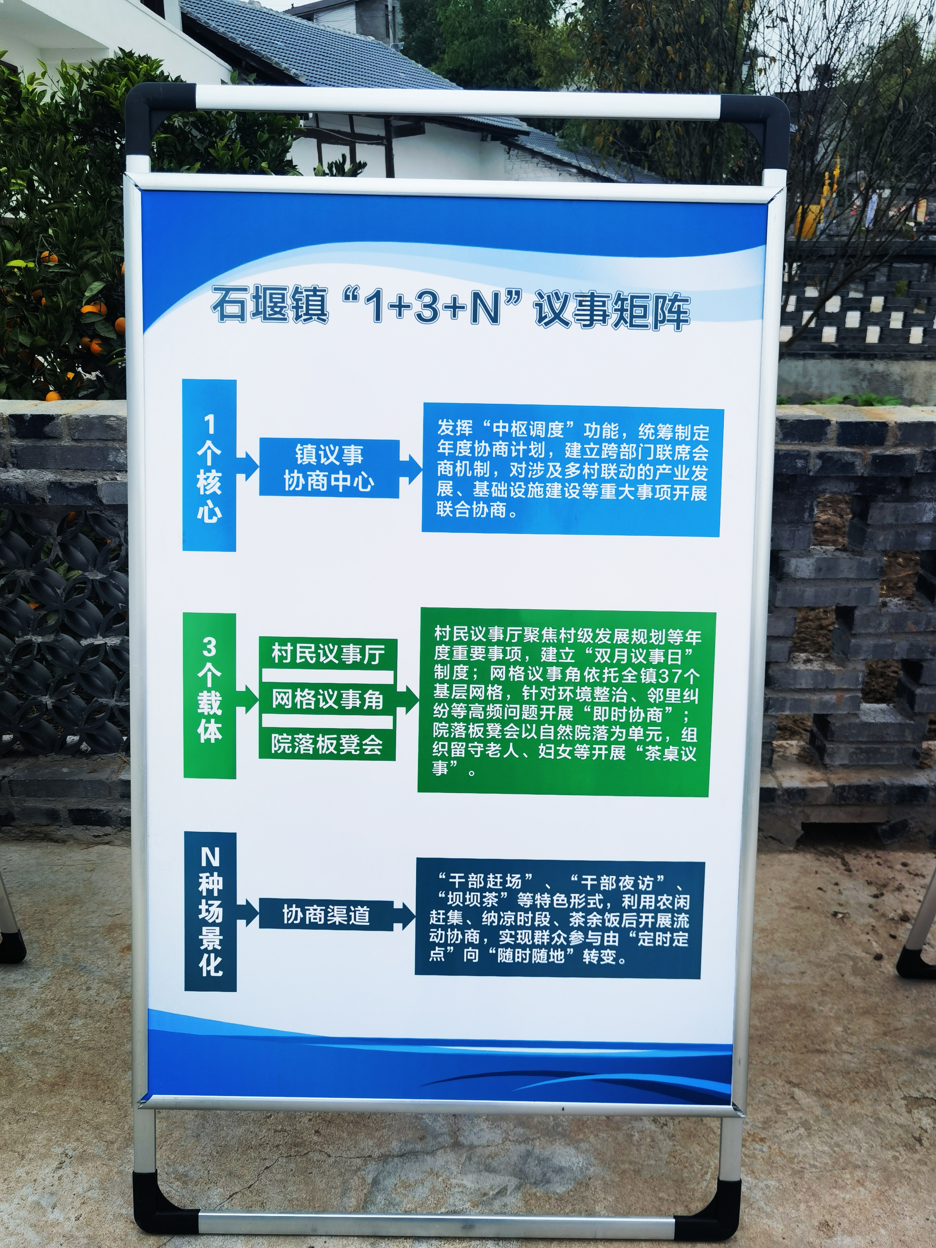 “以前村里修路建广场都是干部定,现在大家坐一起商量,我们的话管用!”石堰镇高庙村“石事实商量”议事亭里,村民们热议村务。余勇介绍,这一议事机制取“实事求是”谐音,构建“1+3+N”矩阵:1个镇级协商中心统筹,村民议事厅、网格议事角、院落板凳会等3级落实,多个田间地头的“移动协商点”灵活补充。