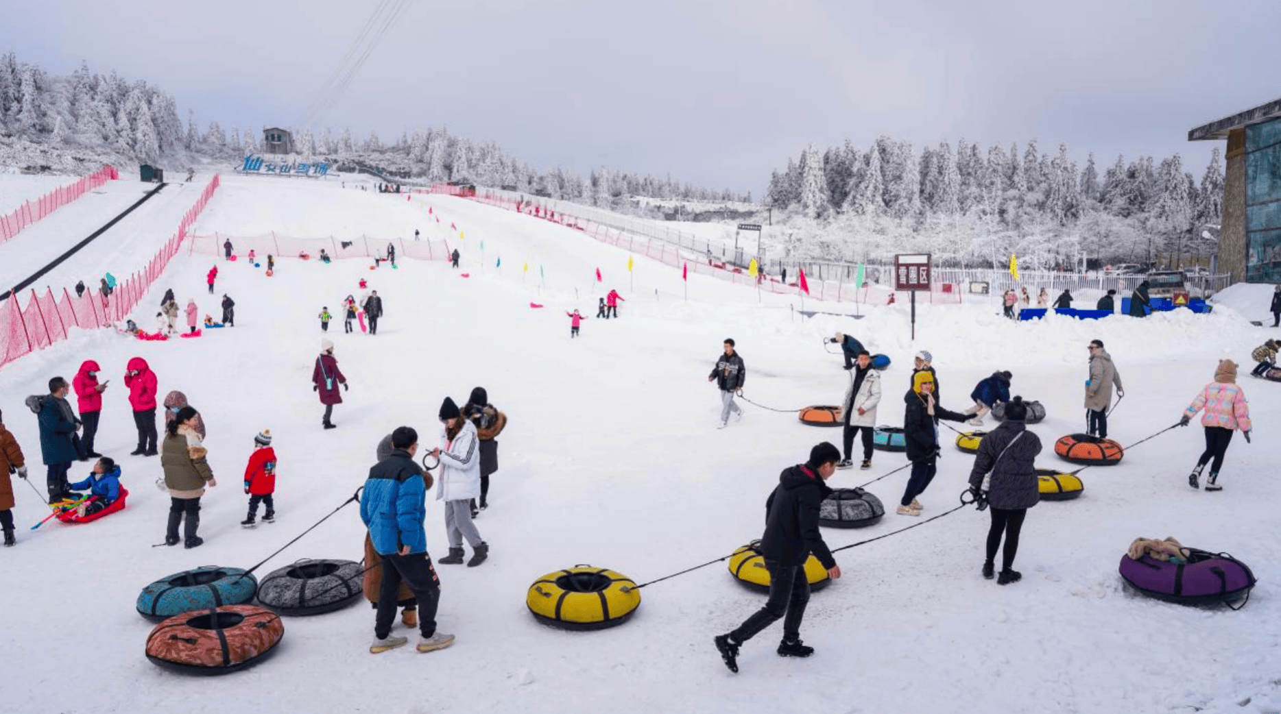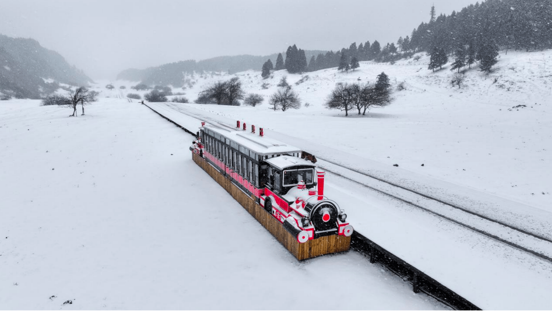 在“超新玩法”方面,仙女山景区推出新活动、新体验、新场景三大特色内容。新活动包括跨界融合机车与马术的“冰雪骑士”和自驾越野“冰雪穿越行动”;新体验打造“萌宠同行”“林海秘径”两大沉浸式徒步线路及“冰雪大作战”团队项目,并新增热气球低空游览项目;新场景设置“最浪漫的长条凳”“最慵懒的小羊”等网红打卡点,游客还可与巨型雪原多巴胺彩色二维“马”互动。景区同时组织百人直播团实时分享雪原盛况。