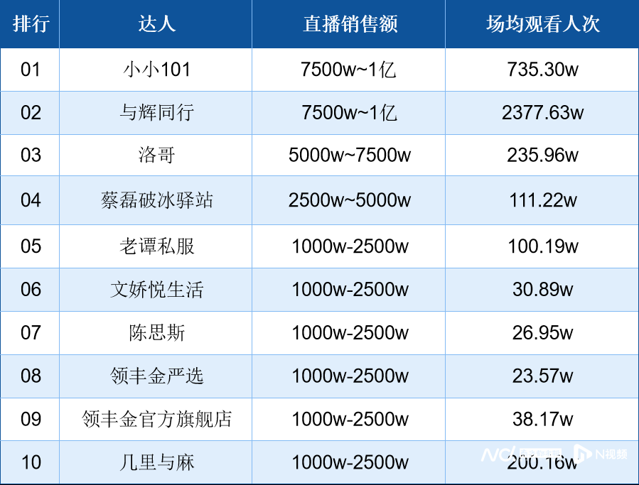 抖音1月7日直播带货日榜:前十销售额大幅增长,小小1014小时揽超7500万销售额打破与辉同行连续第一纪录,登顶榜首,与辉同行位居次席。