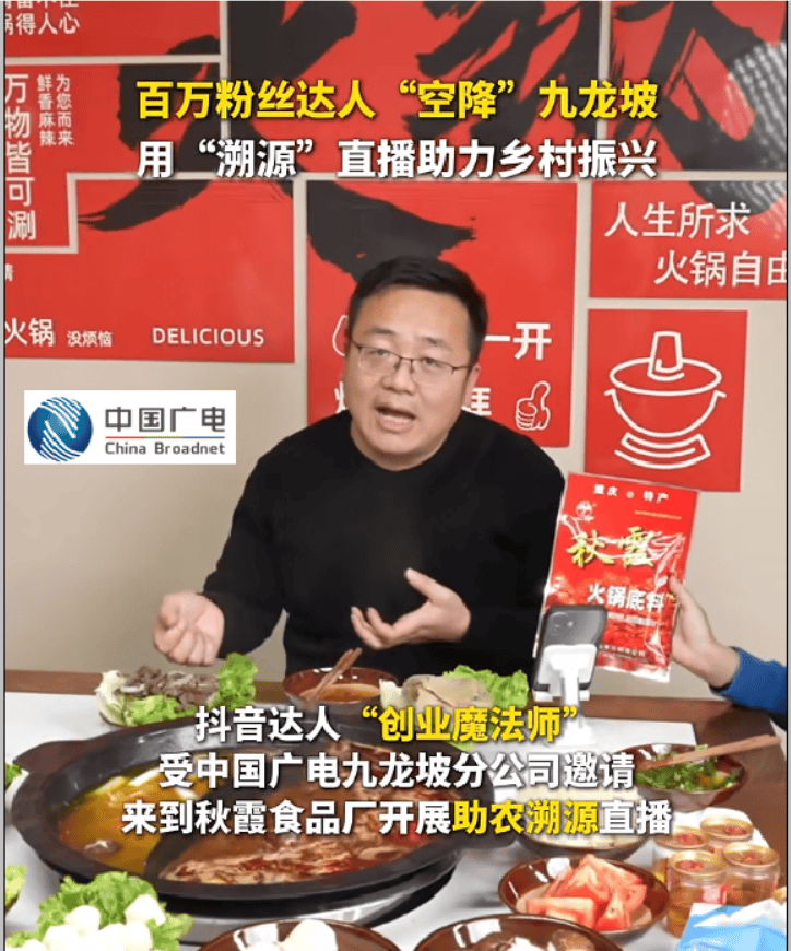 2026年1月9日消息,元旦期间,中国广电重庆公司九龙坡分公司与区融媒体中心联合开展“元旦渝味·溯源乡田”重庆名特优产品直播,通过“媒体+达人+企业”的联动,