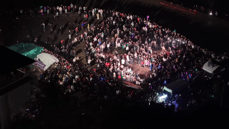 1月9日至10日,视频迅速爆火,48小时内,视频获超18万点赞、14万转发,5个500人粉丝群全部满员。1月11日,上千名网友驱车奔赴现场,车辆从村头排到村尾。现场,宰杀年猪,流水席热闹开席,舞龙、打铁花、篝火晚会精彩纷呈,直播间超10万人在线“云围观”,活动一直持续到了12日晚。一场乡土求助意外变成充满烟火气的全民嘉年华,让久违的年味与温情刷屏网络。