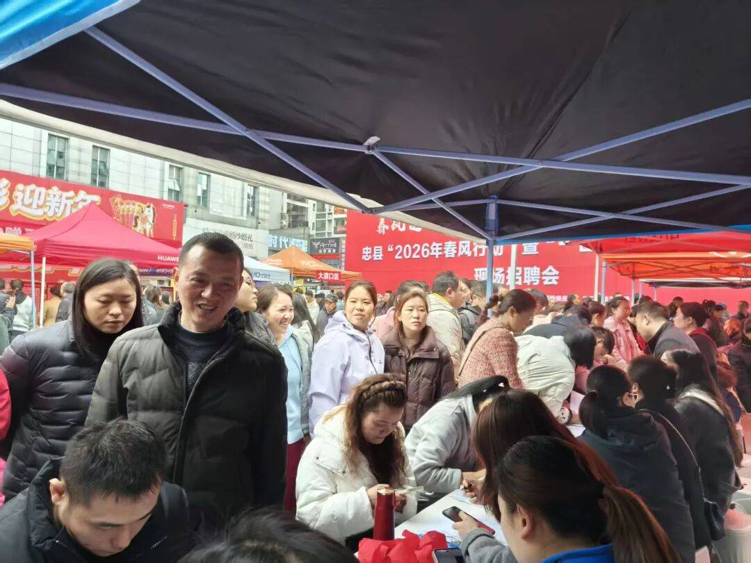 2月25日,忠县、大渡口区、大足区三地人力社保部门联合主办2026年春风行动暨区域协同发展招聘会,此次招聘会共组织了三地95家优质企业参与,覆盖制造业、电子信息、现代服务业、智能装备等多个重点产业领域,提供涵盖技术研发、行政管理、基础操作工、市场营销等多个工种共2032个就业岗位,充分满足不同年龄层次、不同技能水平求职者的多元化需求,现场达成就业意向人数超过300余人。