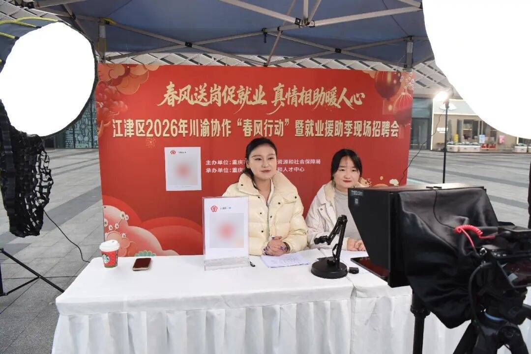 2月5日,江津区2026年川渝协作“春风行动”暨就业援助季现场招聘活动在双福街道时代广场成功举办。本次活动联动川渝黔多地优质企业,首次创新开通直播带岗,以“线下精准对接+线上云端送岗”模式,为求职者与用工单位搭建高效对接平台,推动重点群体高质量充分就业。当天活动汇聚江津本地94家企业,联动四川省泸州市、雅安市,贵州省赤水市及重庆市永川区等周边地区129家优质企业,223家企业现场提供6000余个优质岗位,覆盖先进制造、电子信息、现代服务等多个领域。活动现场累计接待求职群众3000余人次,初步达成就业意向1032人次,线万次。