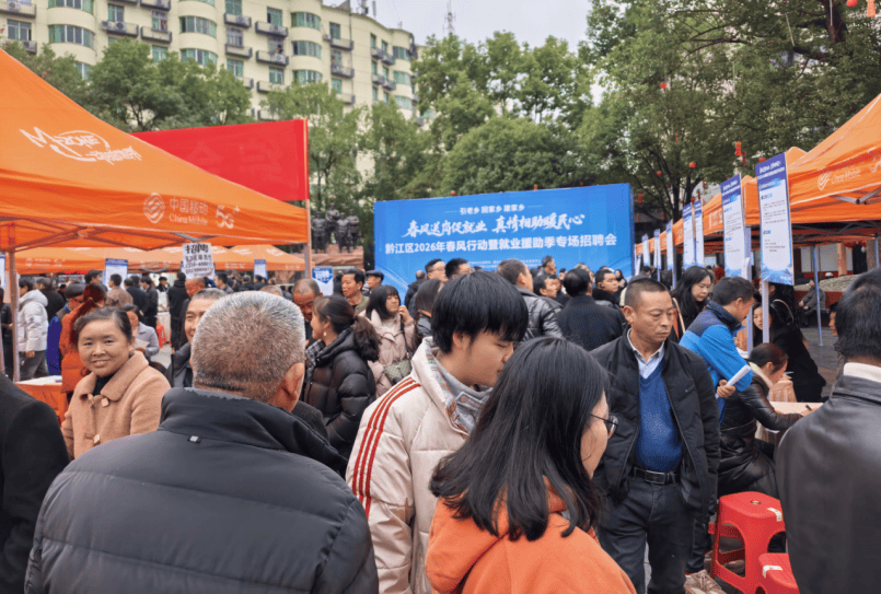 2月25日,黔江区成功举办2026年春风行动暨就业援助季专场招聘会,来自山东、四川、重庆高新区和黔江本地85家重点企业携6100多个就业岗位集中揽才。现场同步设立政策咨询、职业指导和综合服务等专区,人社、工会、医保等部门现场“坐诊”。据统计,活动当天吸引4000余人现场应聘求职和进行政策咨询,初步达成就业意向1048人。
