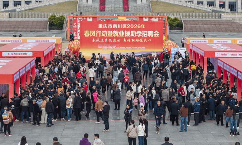 2月25日,南川区2026年春风行动暨就业援助季招聘会活动在南川市民广场举行。本次招聘会共吸引90家企业参与、提供就业岗位4059个,同时发布四川都江堰、贵州道真等合作地区的岗位信息,以满足不同年龄、不同技能层次求职者的就业需求。参加活动4200余人,完成求职意向登记1810余人,技能培训报名260人,发放政策宣传资料5200余份。